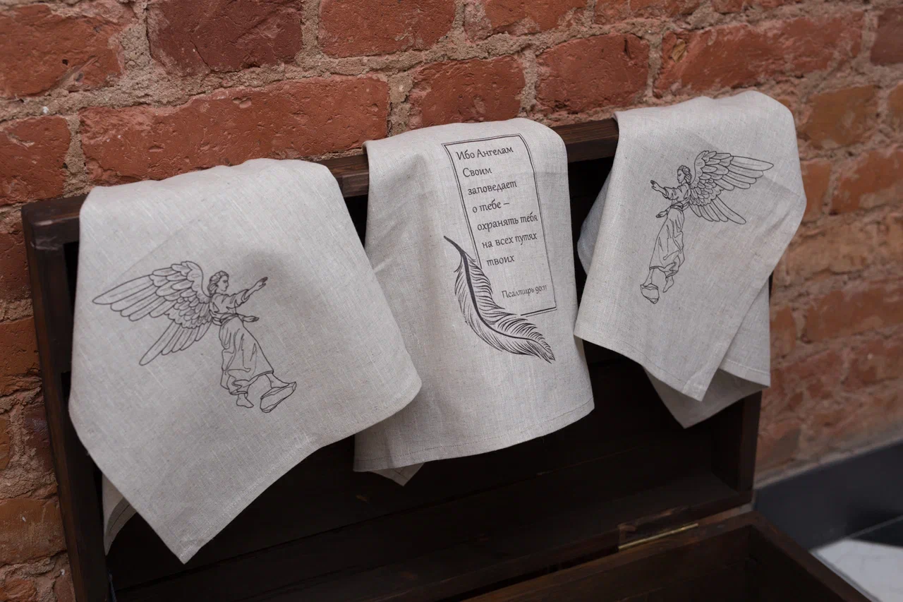 Набор льняных кухонных полотенец с печатью «Ангел», 3 шт.