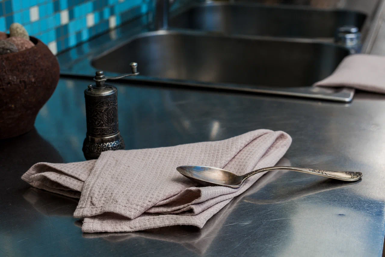 Ткань на основе льна хорошо впитывает влагу и быстро высыхает. Натуральная фактура делает полотенце живой и приятной деталью кухни, а со временем ткань становится мягче.